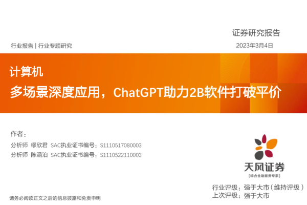 【天风证券】【20230304】计算机行业专题研究:多场景深度应用,ChatGPT助力2B软件打破平价-25页