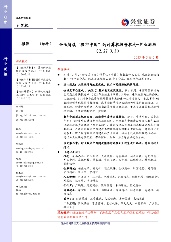 【兴业证券】【20230305】全面解读“数字中国”的计算机投资机会-行业周报 (2.27-3.5)-18页