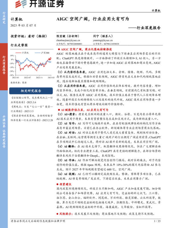 【开源证券】【20230307】计算机行业深度报告:AIGC空间广阔,行业应用大有可为-35页