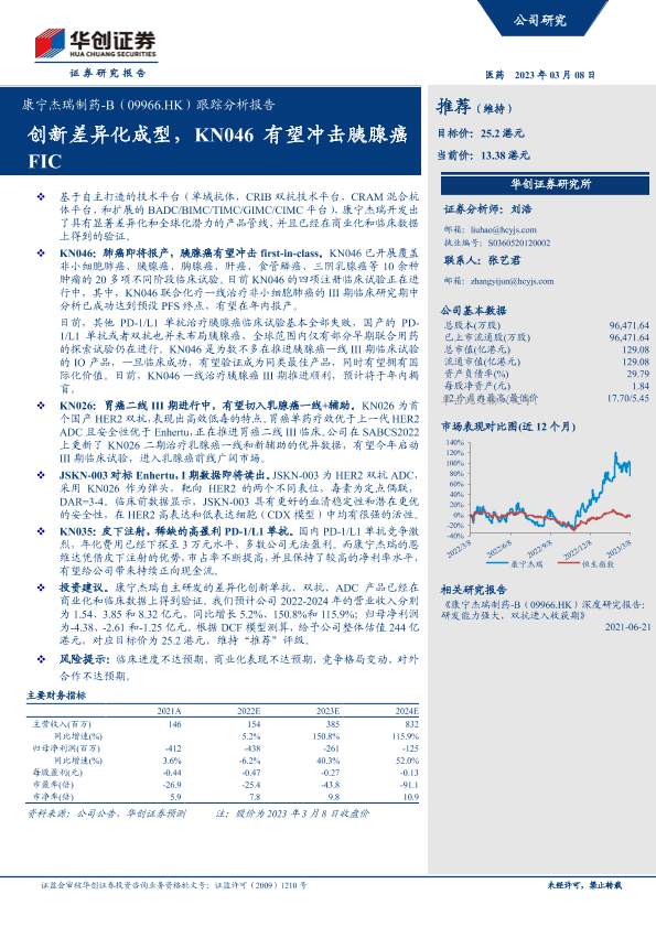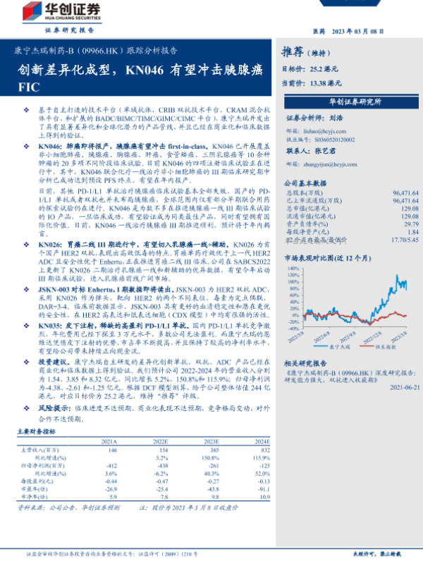 【华创证券】【20230308】跟踪分析报告:创新差异化成型,KN046有望冲击胰腺癌FIC-19页