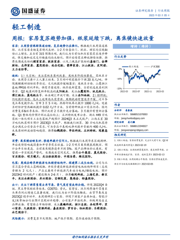 【国盛证券】【20230305】轻工制造周报:家居复苏趋势加强,纸浆延续下跌,离焦镜快速放量-42页