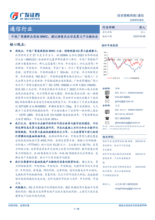 【广发证券】【20230306】通信行业投资策略周报:中国厂商携新品亮相MWC,建议持续关注信息算力产业链机会-16页