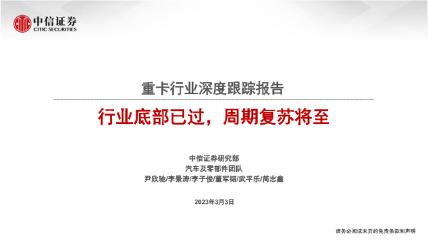 【中信证券】【20230303】重卡行业深度跟踪报告:行业底部已过,周期复苏将至-24页
