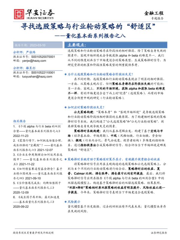 【华安证券】【20230310】量化基本面系列报告之八:寻找选股策略与行业轮动策略的“舒适区”-38页