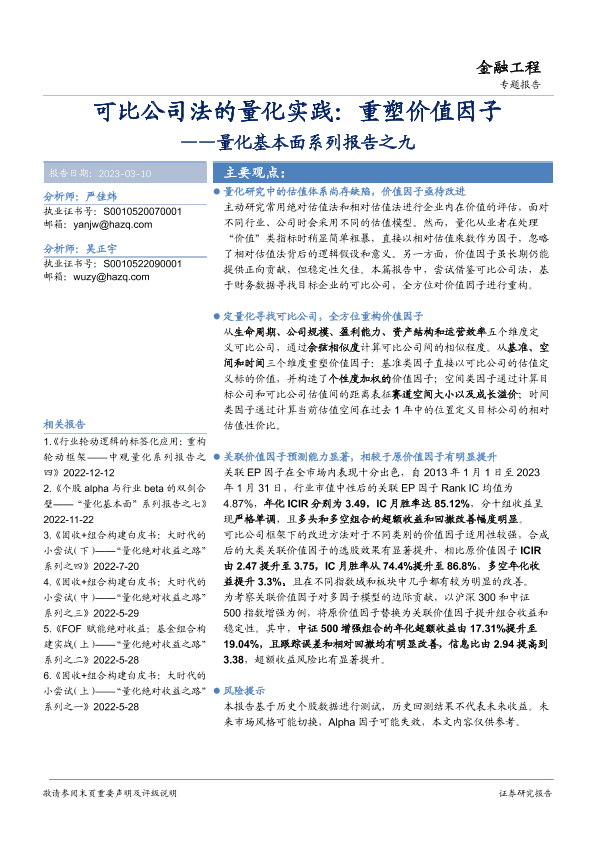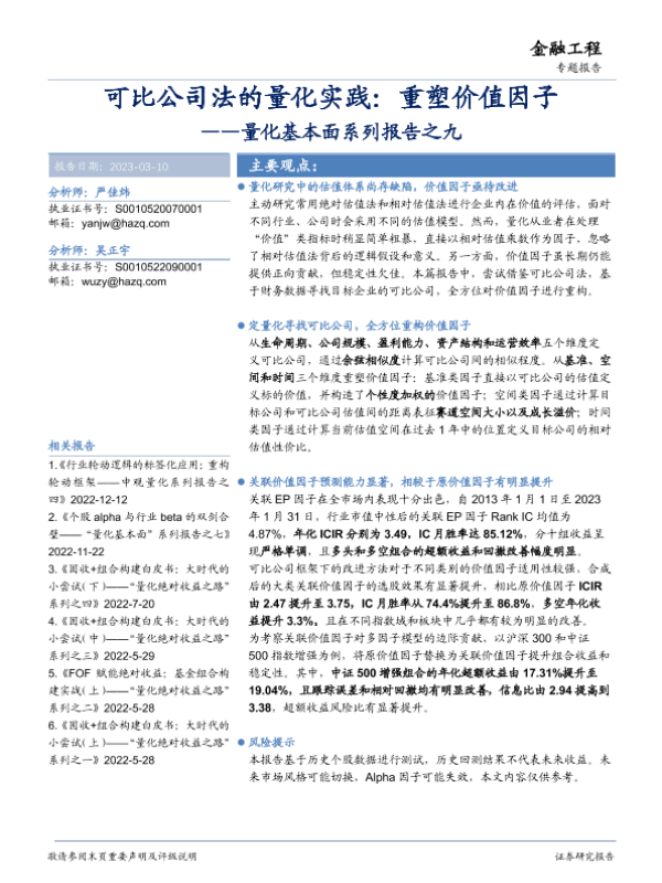 【华安证券】【20230310】量化基本面系列报告之九:可比公司法的量化实践,重塑价值因子-31页
