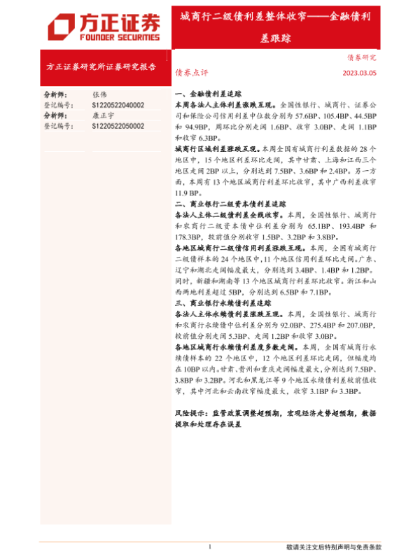 【方正证券】【20230305】金融债利差跟踪:城商行二级债利差整体收窄-15页