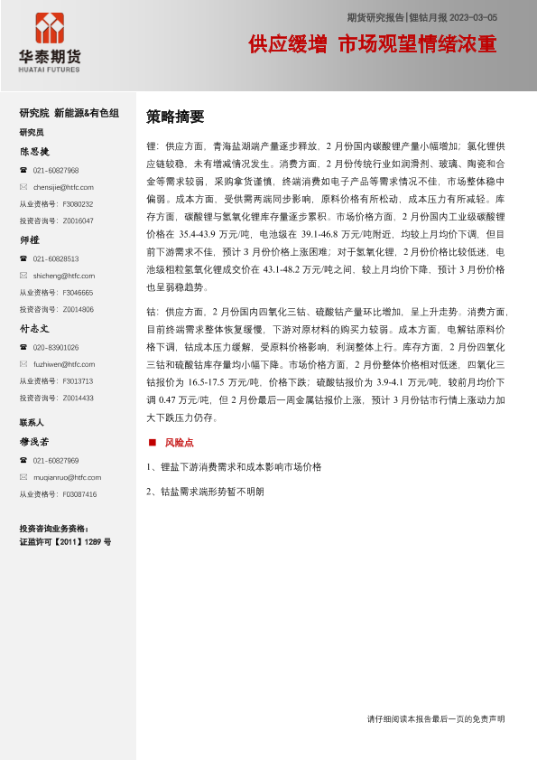 【华泰期货】【20230305】钴锂月报:供应缓增,市场观望情绪浓重-23页