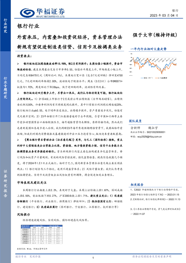 【华福证券】【20230304】银行行业:外需承压,内需叠加投资促经济,资本管理办法新规有望促进制造类信贷、信用卡及按揭类业务-18页