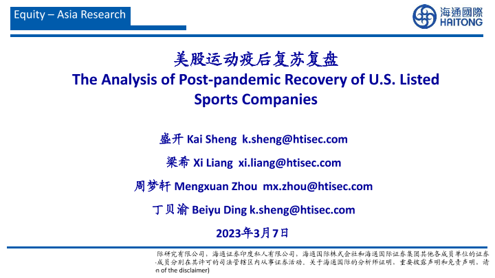 【海通证券】【20230307】美股运动疫后复苏复盘-37页