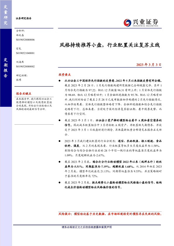 【兴业证券】【20230303】风格持续推荐小盘,行业配置关注复苏主线-24页