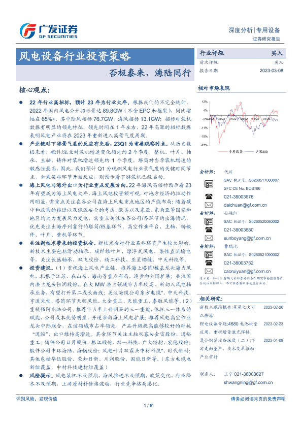 【广发证券】【20230308】风电设备行业投资策略:否极泰来,海陆同行-61页