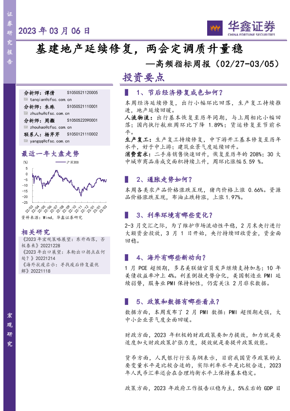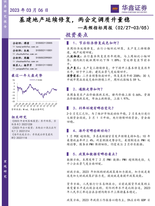 【华鑫证券】【20230306】高频指标周报:基建地产延续修复,两会定调质升量稳-27页