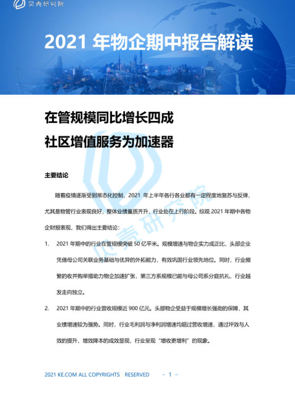 【贝壳研究院】【20210101】物企2021年中财报分析-15页