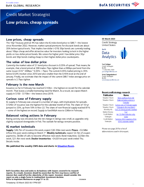 【BofA Securities】【20230303】Credit Market Strategist Low prices, cheap spreads-23页