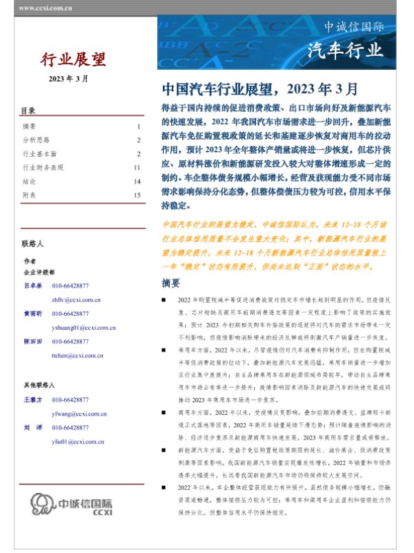 【中诚信国际】【20230301】中诚信-中国汽车行业展望(2023年3月)-17页