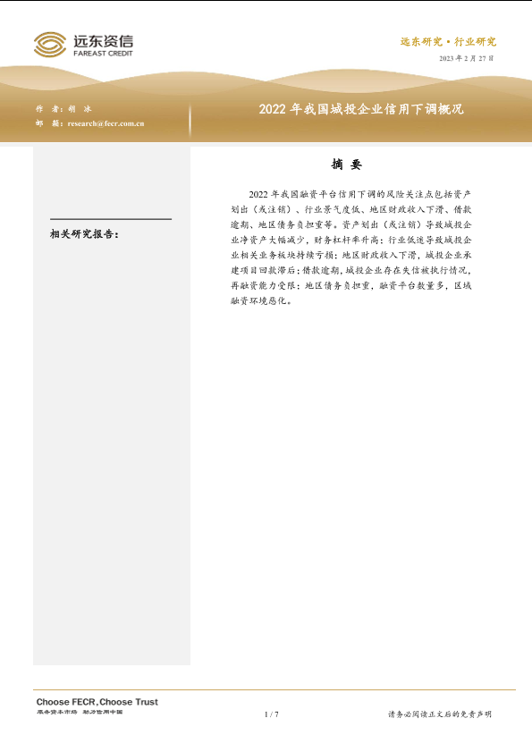【远东资信】【20230227】2022年我国城投企业信用下调概况-7页