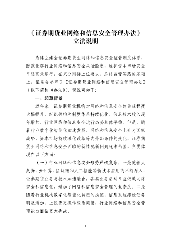 立法说明 管理办法 网络安全 证券期货 金融监管
