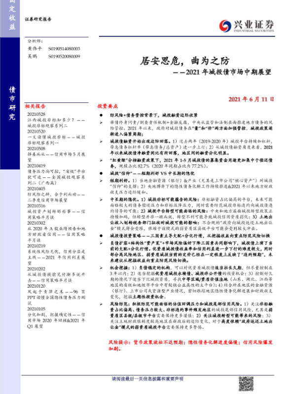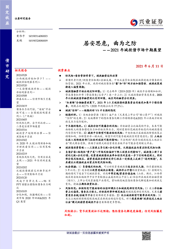 【兴业证券】【20210611】2021年城投债市场中期展望:居安思危,曲为之防-31页
