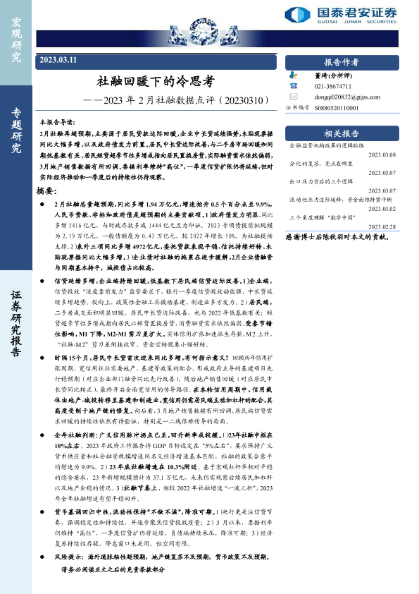 【国泰君安证券】【20230311】2023年2月社融数据点评:社融回暖下的冷思考-16页
