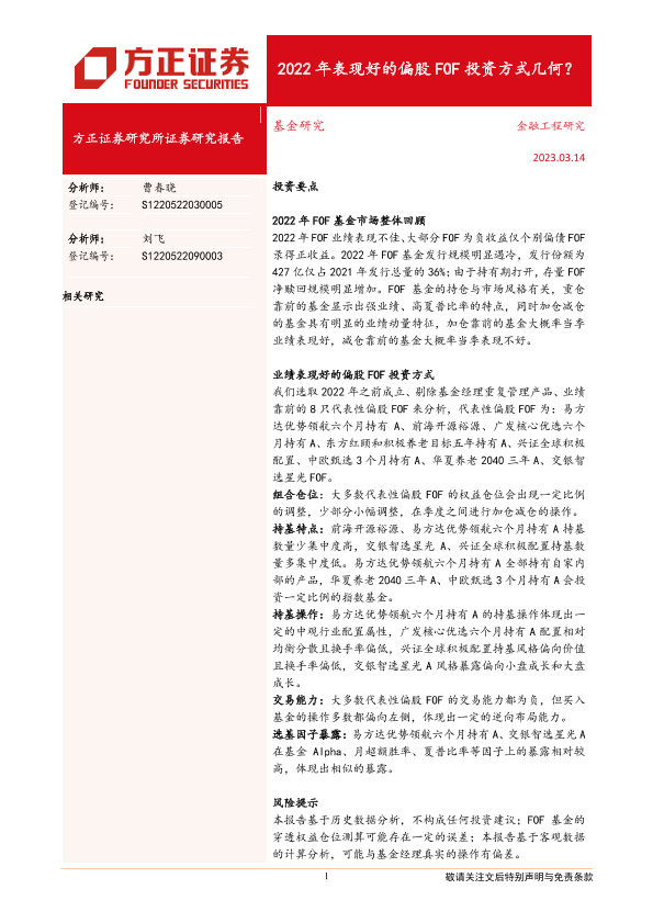 【方正证券】【20230314】2022年表现好的偏股FOF投资方式几何?-25页