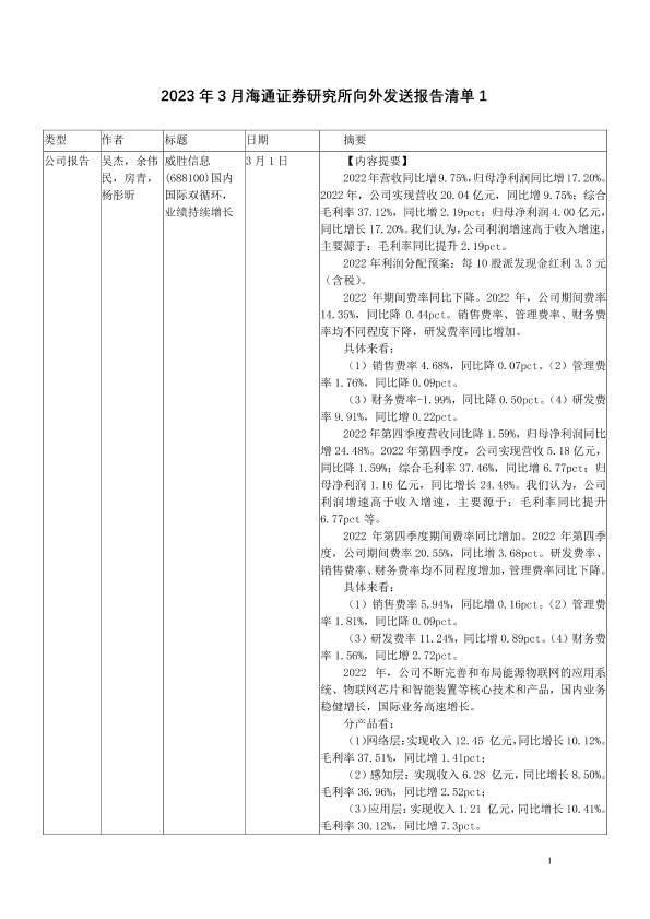 【海通证券】【20230313】2023年3月海通证券研究所向外发送报告清单1-122页