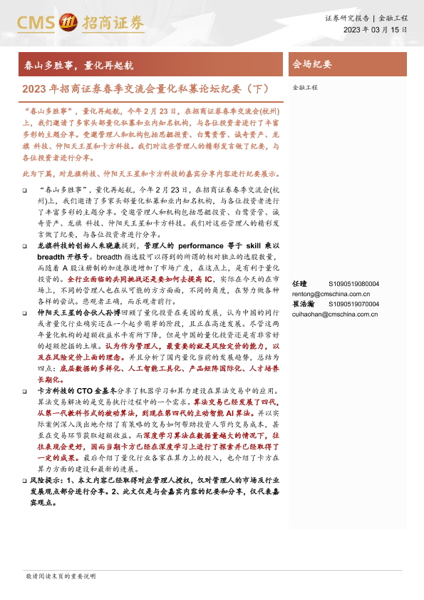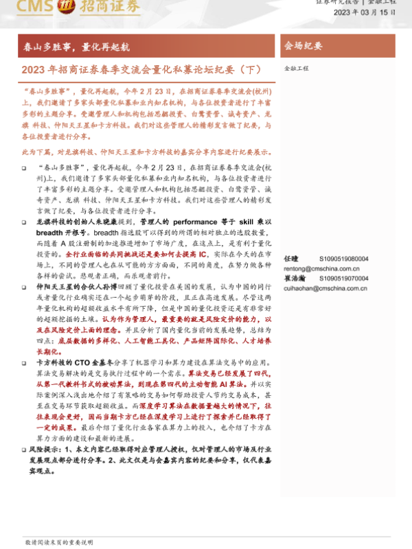 【海通证券】【20230315】2023年招商证券春季交流会量化私募论坛纪要(下):春山多胜事,量化再起航-33页