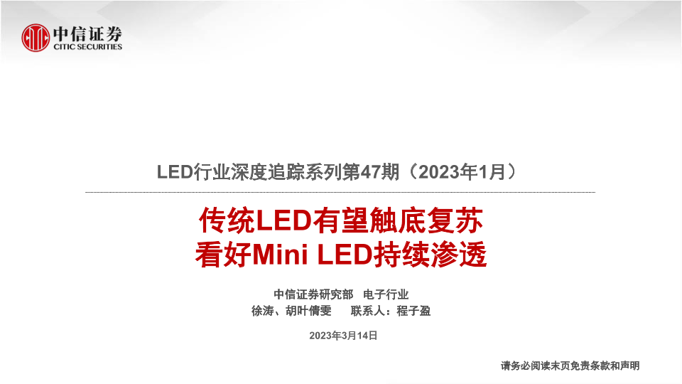 【中信证券】【20230314】LED行业深度追踪系列第47期(2023年1月):传统LED有望触底复苏,看好Mini LED持续渗透-21页