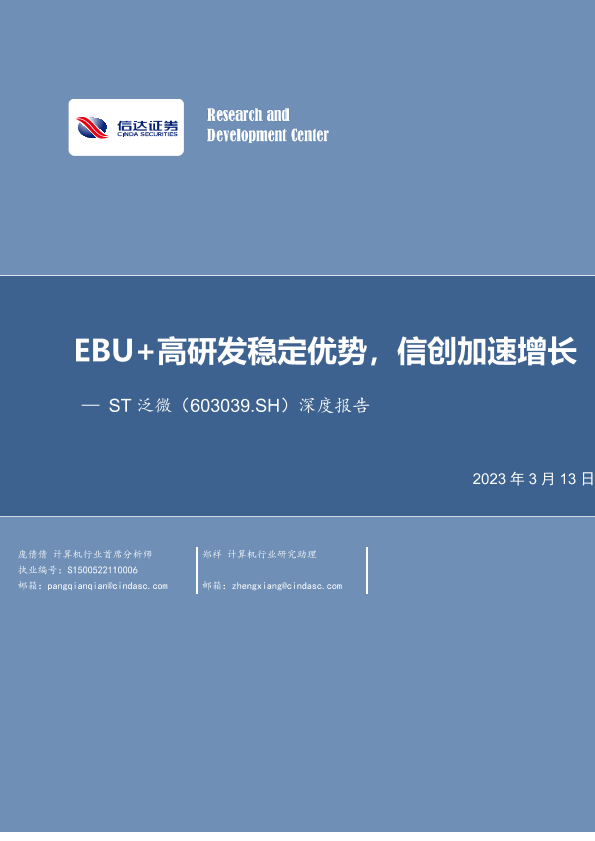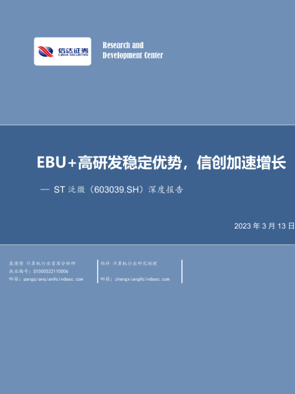 【信达证券】【20230313】ST泛微深度报告 EBU+高研发稳定优势,信创加速增长-41页