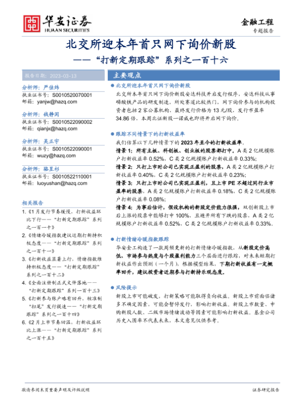【华安证券】【20230313】“打新定期跟踪”系列之一百十六:北交所迎本年首只网下询价新股-23页