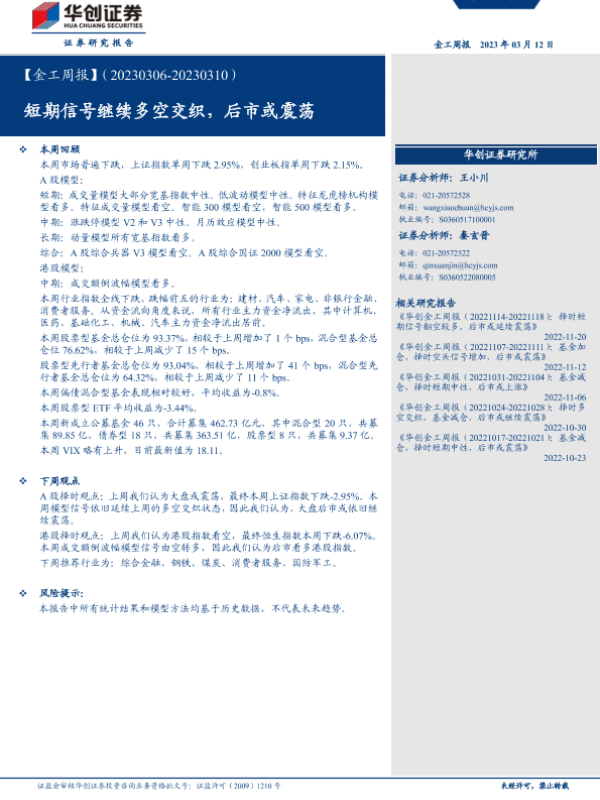 【华创证券】【20230312】【金工周报】短期信号继续多空交织,后市或震荡-24页