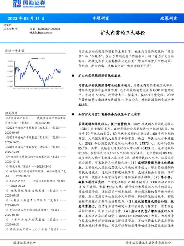 【国海证券】【20230311】专题研究:扩大内需的三大路径-22页