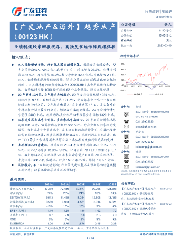 【广发证券】【20230316】业绩稳健股东回报优厚,高强度拿地保障规模弹性-16页