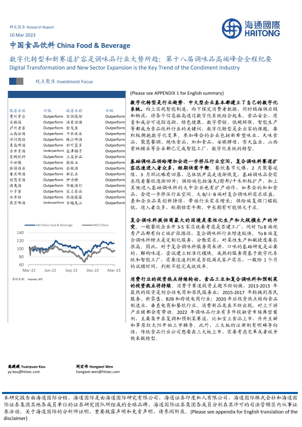 【海通证券】【20230310】中国食品饮料:数字化转型和新赛道扩容是调味品行业大势所趋:第十八届调味品高端峰会全程纪要-29页