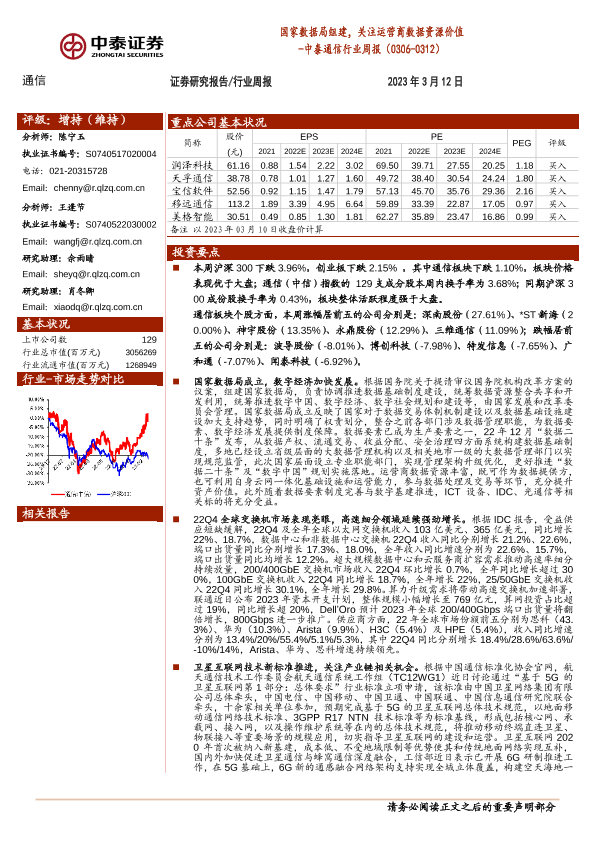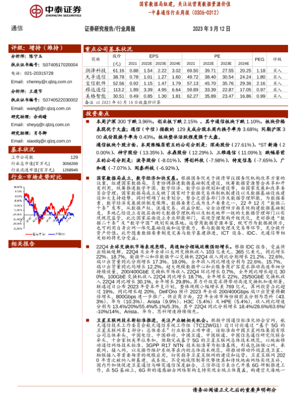 【中泰证券】【20230312】中泰通信行业周报:国家数据局组建,关注运营商数据资源价值-19页