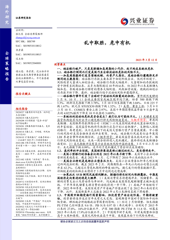 投资策略 硅谷银行 经济复苏 金融风险 股市分析