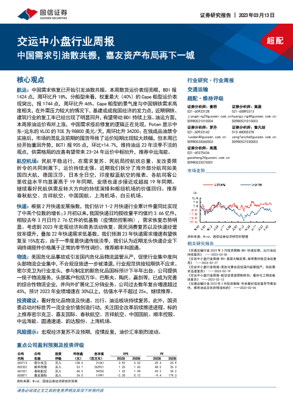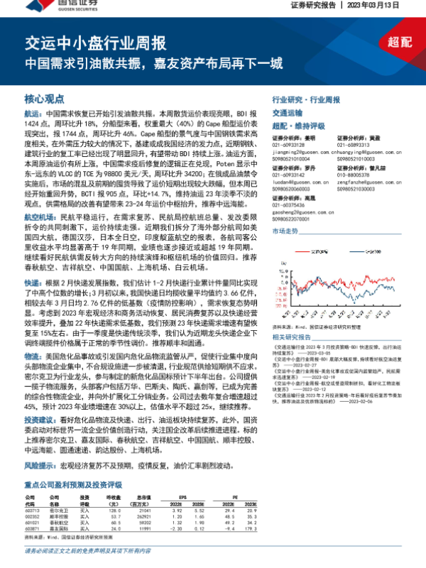 【国信证券】【20230313】交运中小盘行业周报:中国需求引油散共振,嘉友资产布局再下一城-16页