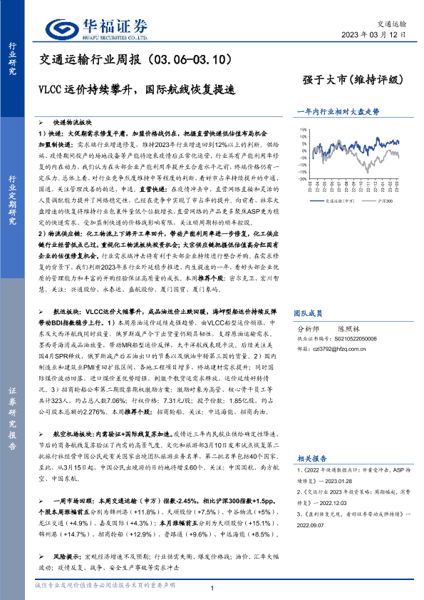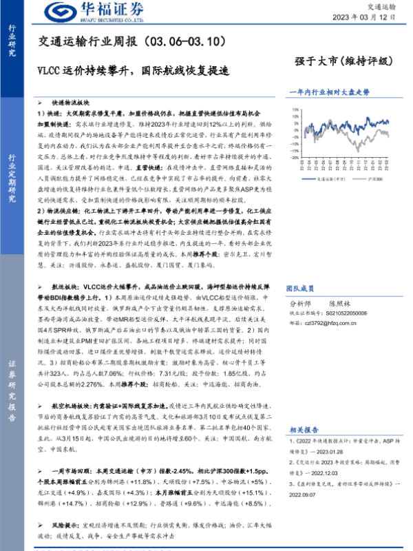【华福证券】【20230312】交通运输行业周报:VLCC运价持续攀升,国际航线恢复提速-15页