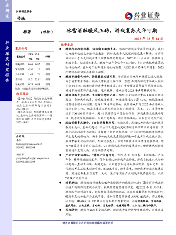 【兴业证券】【20230314】冰雪消融暖风正劲,游戏复苏大年可期-33页