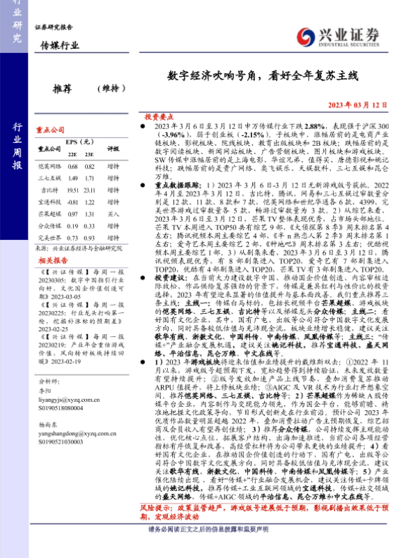 【兴业证券】【20230312】传媒行业:数字经济吹响号角,看好全年复苏主线-21页