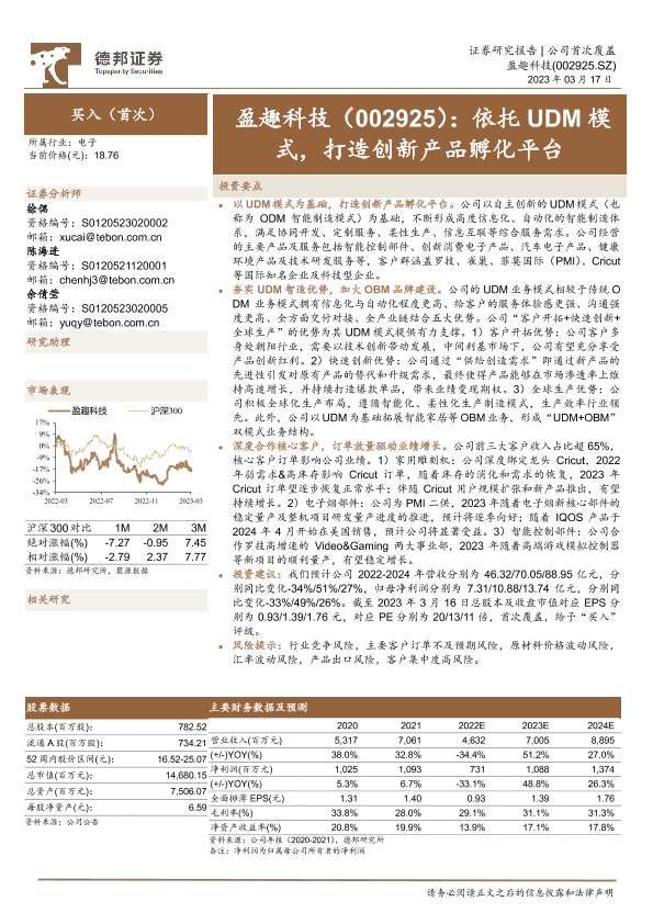 UDM模式 创新产品孵化 电子 盈趣科技 证券研究