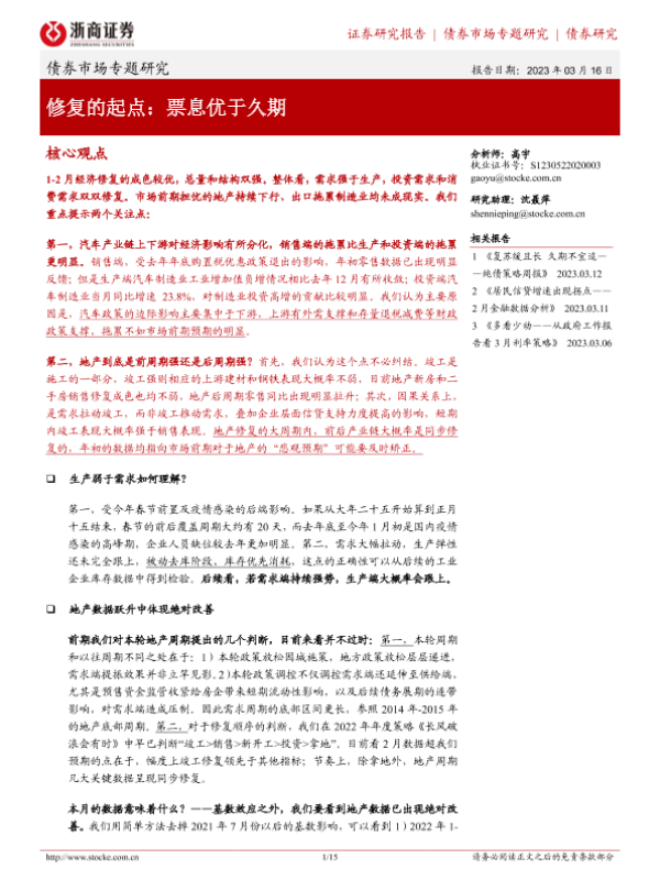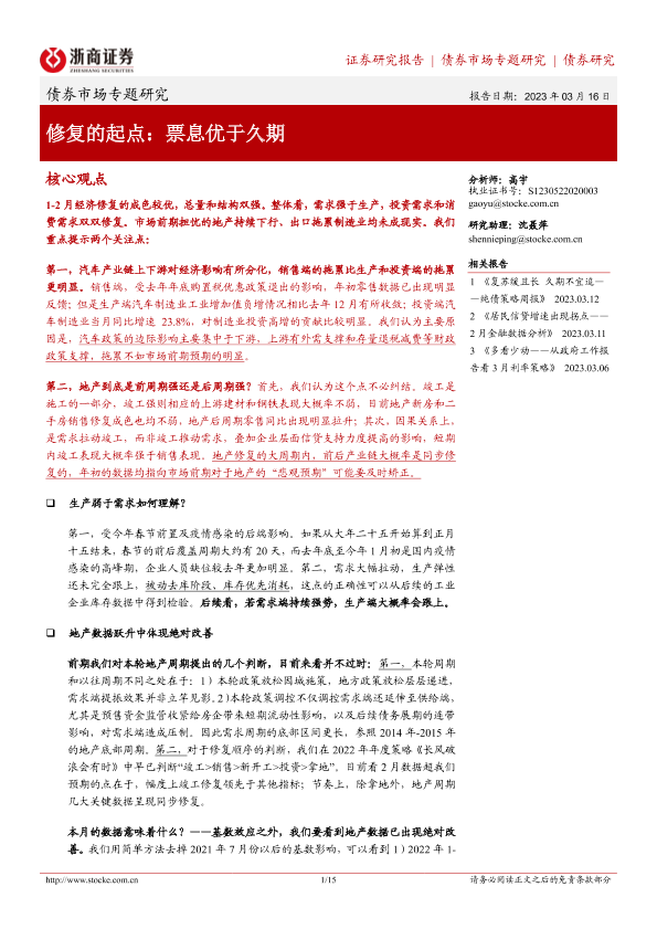【浙商证券】【20230316】修复的起点:票息优于久期-15页