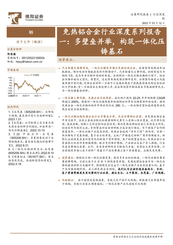 【德邦证券】【20230312】免热铝合金行业深度系列报告一:多壁垒并举,构筑一体化压铸基石-29页