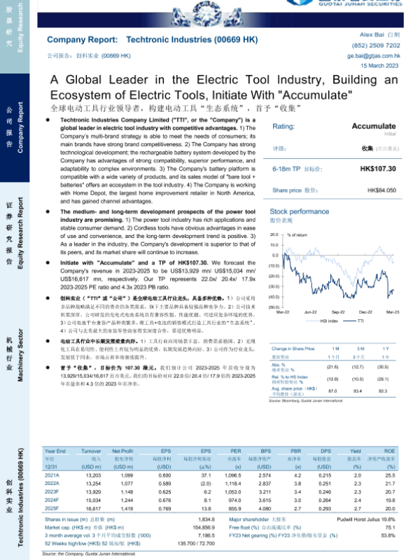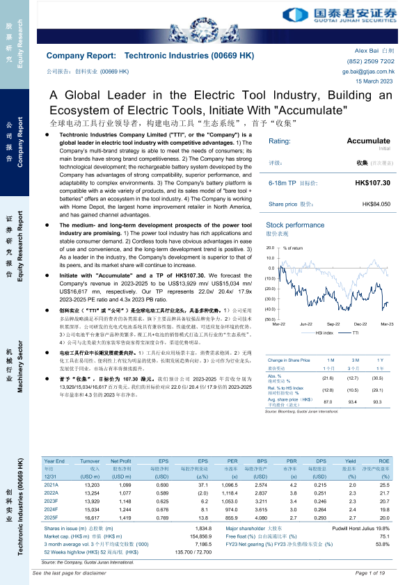 【国泰君安证券】【20230315】全球电动工具行业领导者,构建电动工具“生态系统”,首予“收集”-19页