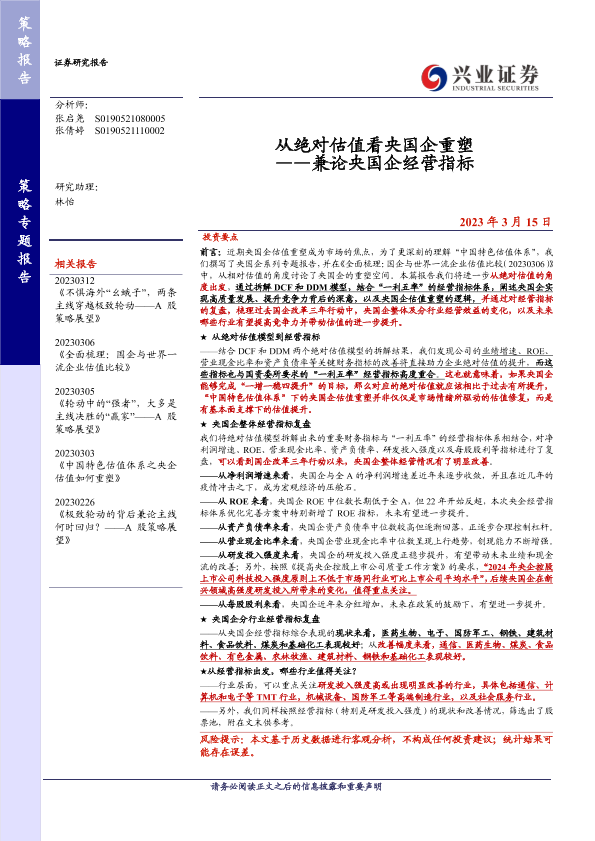 【兴业证券】【20230315】从绝对估值看央国企重塑——兼论央国企经营指标-22页