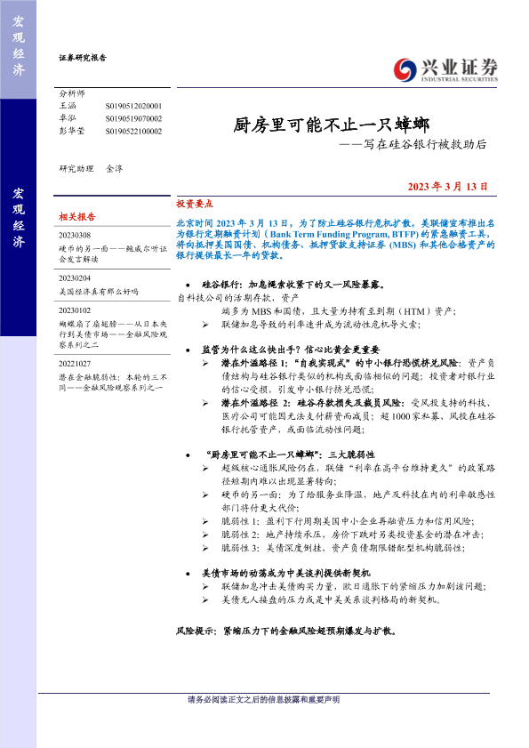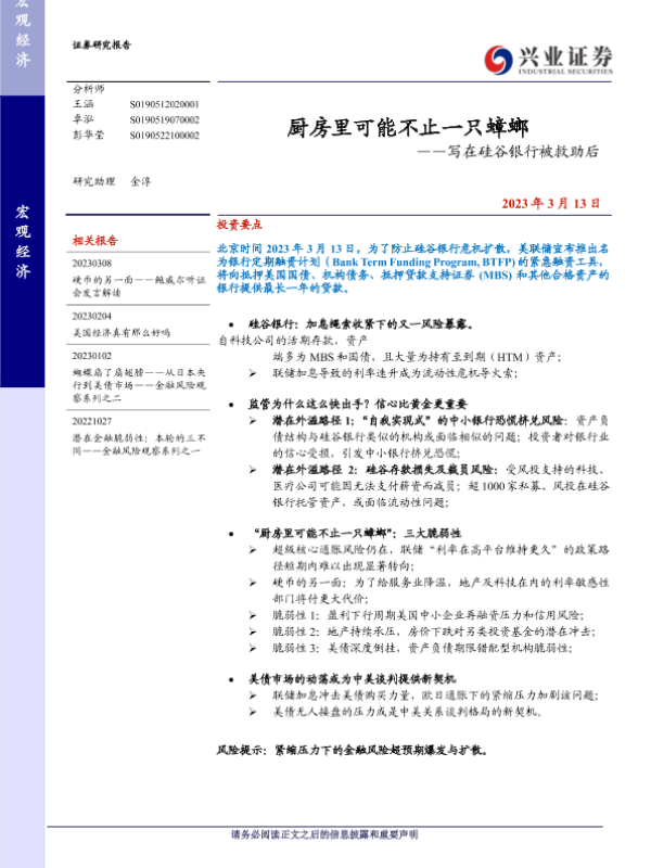 【兴业证券】【20230313】写在硅谷银行被救助后:厨房里可能不止一只蟑螂-15页