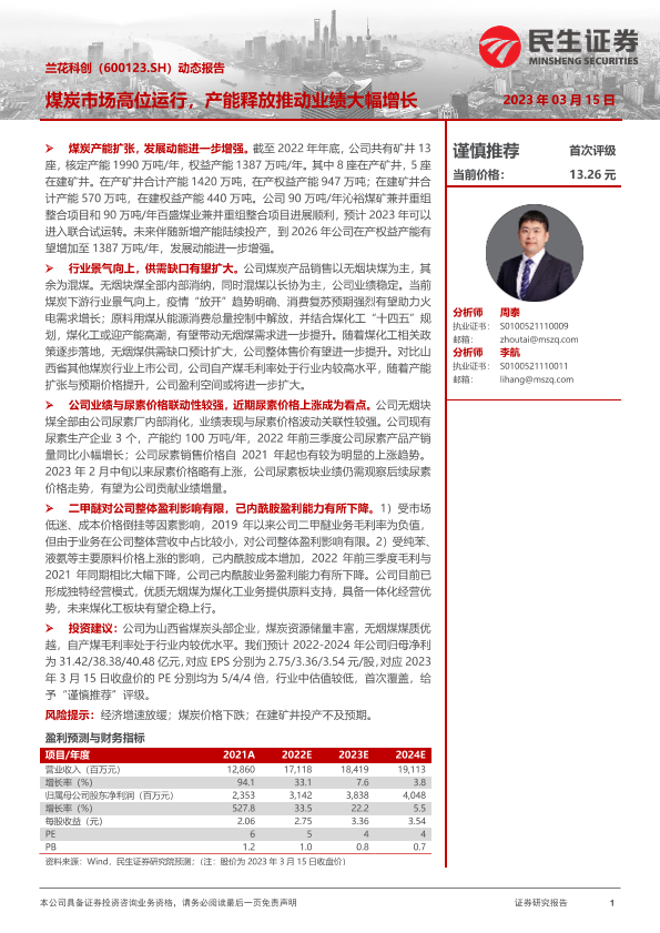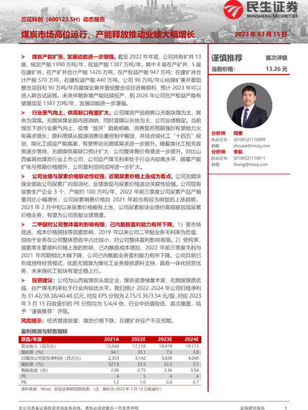 【民生证券】【20230315】动态报告:煤炭市场高位运行,产能释放推动业绩大幅增长-16页