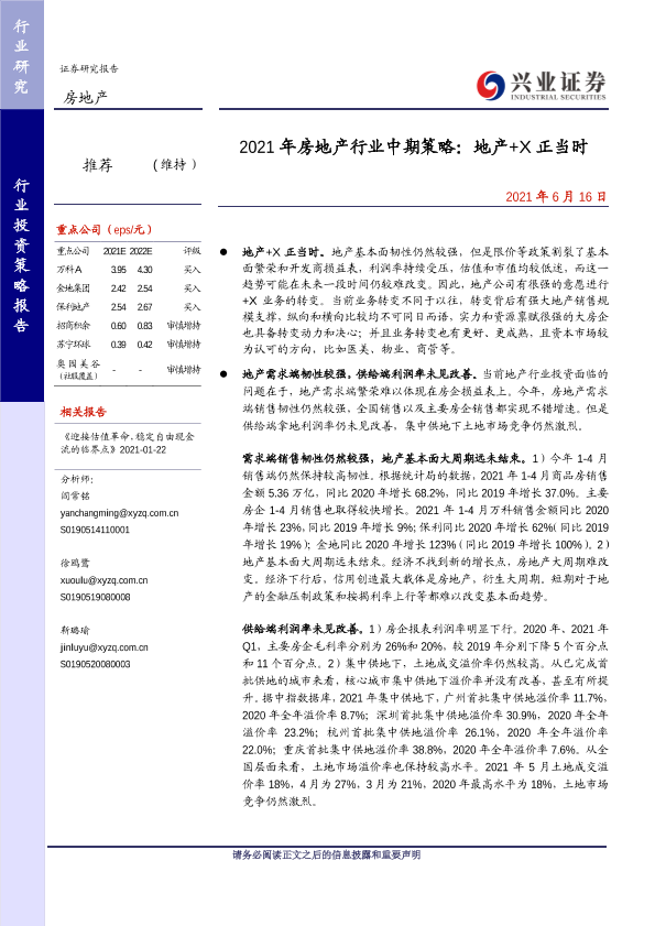 【兴业证券】【20210616】2021年房地产行业中期策略:地产+X正当时-27页