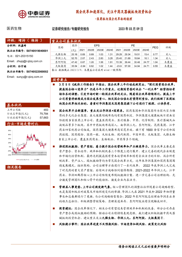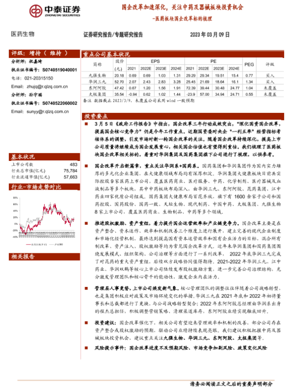 【中泰证券】【20230309】医药板块国企改革标的梳理:国企改革加速深化,关注中药及器械板块投资机会-23页