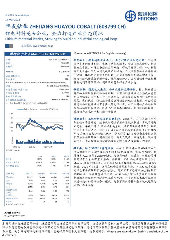 【海通国际】【20230314】华友钴业(603799)锂电材料龙头企业,全力打造产业生态闭环-26页