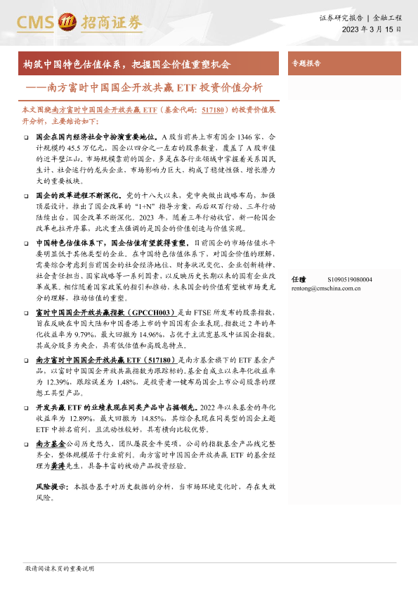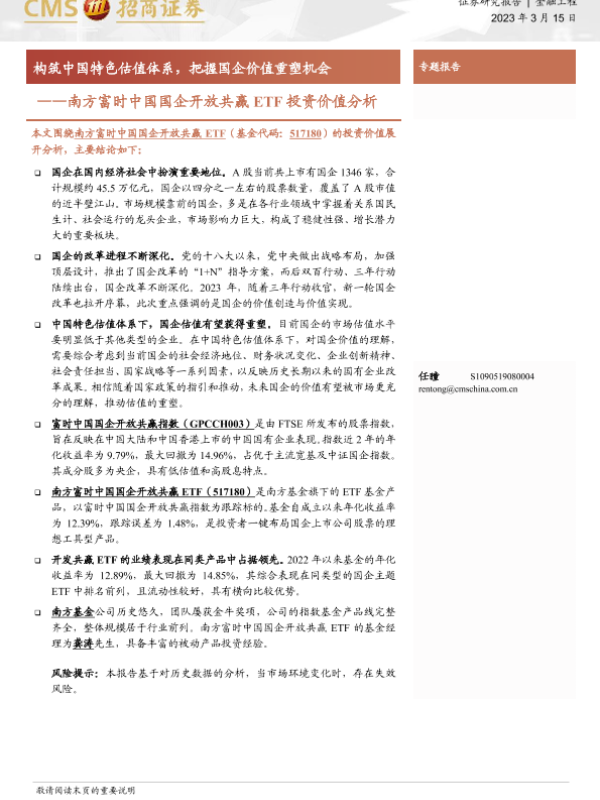 【海通证券】【20230315】南方富时中国国企开放共赢ETF投资价值分析:构筑中国特色估值体系,把握国企价值重塑机会-19页
